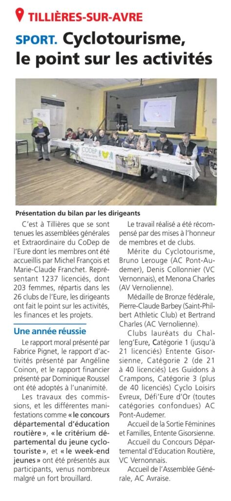 La Dépêche fait paraître un article sur la dernière Assemblée Générale du CoDep qui s’est tenue à Tillières sur Avre. Découvrez-le ci-dessous…